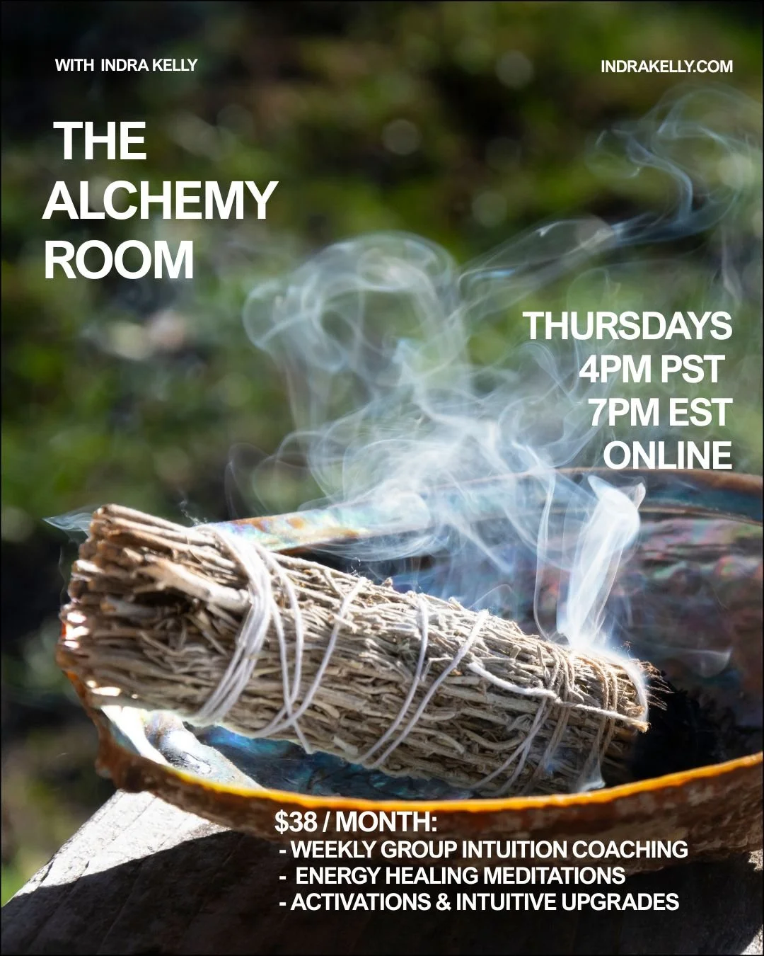 The Alchemy Room is a weekly online gathering for intuitive growth, energetic alignment, and personal transformation. Each Thursday, we come together for group intuition coaching, guided energy healing meditations, and powerful activations designed to help you access your inner wisdom and practice your intuitive abilities.